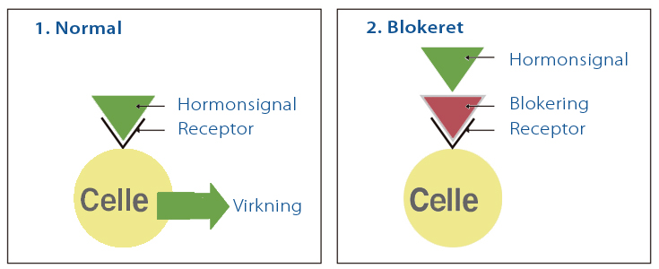 Hormonforstyrrende stoffer som bl.a. dioxin går ind og blokerer receptorerne. Det er fremmedøstrogener, som er “dobbelt onde”: De virker som østrogen, men i modsætning til kroppens eget østrogen, som aktiverer progesteronreceptorerne, så blokerer fremmedøstrogenerne for dem, så progesteron ikke kan få lov at virke. I en eller anden grad vil et højt niveau af fremmedøstrogener derfor gøre, at kroppen ikke kan udnytte progesteron så godt, som den burde – og det gælder både kroppens eget progesteron og det bioidentiske, der tages som tilskud.